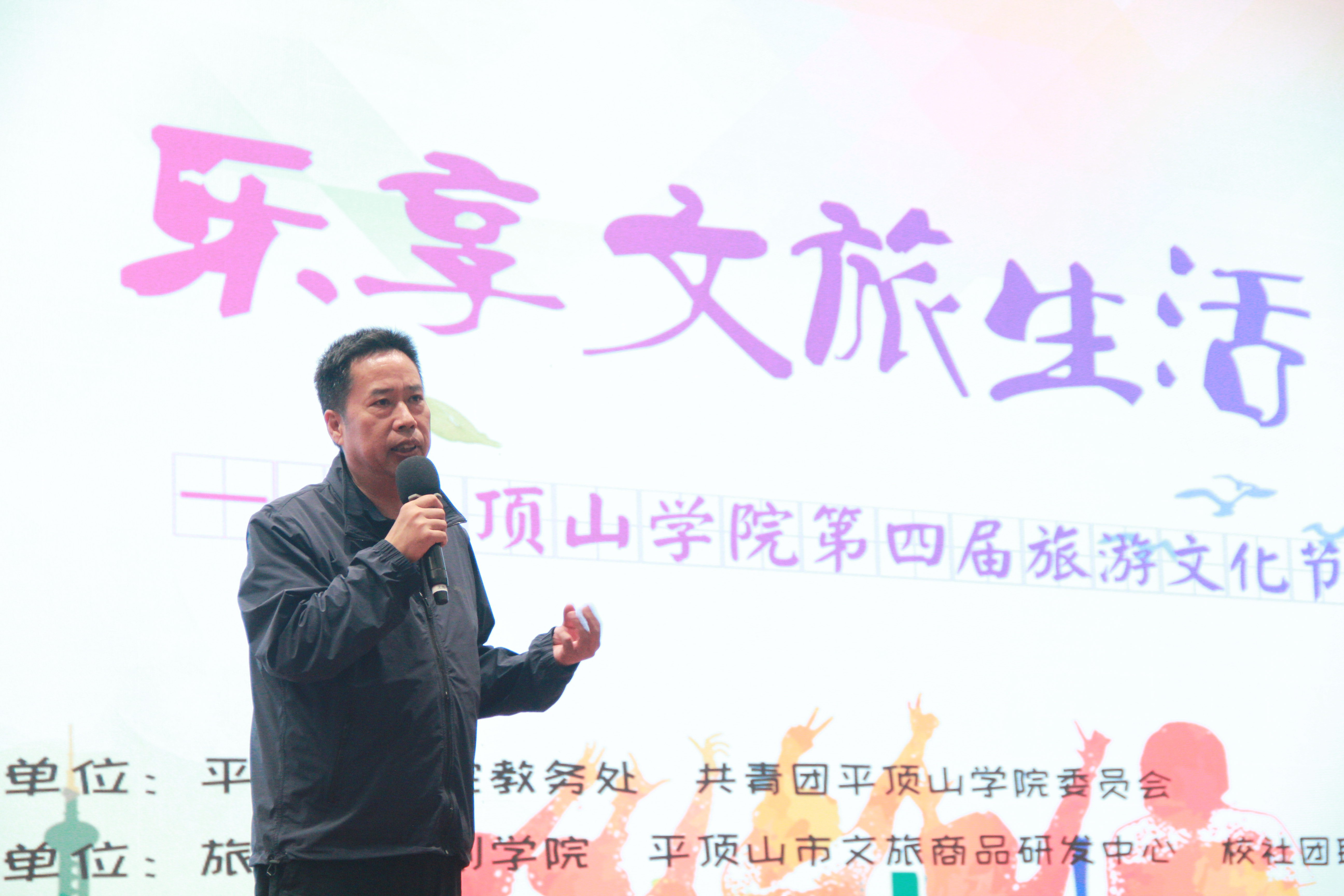 徐渊局长代表平顶山市文化广电和旅游局向我校旅游文化节开幕致辞。他说,当今旅游业进入文旅融合新时代,平顶山市坚持“以文促旅,以旅彰文”,不断推动文旅产业转型升级,打造众多优质文旅产品,以激发多层次消费,让文化发展有活力、旅游发展有魅力。他希望旅游文化节的举办能够为平顶山市打造更好更优秀的旅游文化产品,提升平顶山市文旅的知名度和美誉度,增强文化旅游品牌影响力,促进平顶山市文化旅游经济的发展。