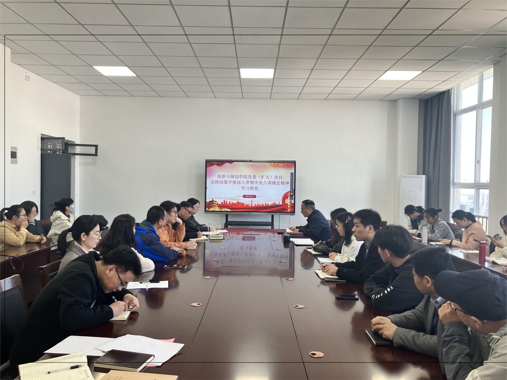 3月20日下午,我院召开党委(扩大)会议,安排部署开展深入贯彻中央八项规定精神学习教育。会议由学院党委书记李玉良主持,学院领导班子成员、科级干部,以及全体教师党员和学生党员参会。
