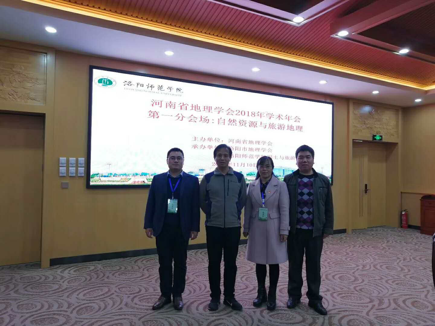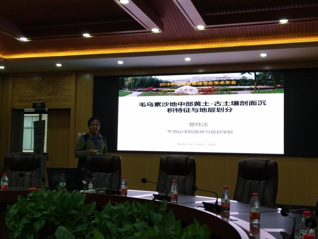 2018年11月10日我院鲁迪教授、陈延辉副教授、楚纯洁博士、李加加博士一行四人在洛阳市参加了河南省地理学会2018年学术年会。会议期间楚纯洁博士作了题为“毛乌素沙地中部黄土-古土壤剖面沉积特征与地层划分”的学术报告。楚博士以毛乌素沙地地层剖面特征与“鄂尔多斯风暴”、毛乌素沙地黄土-古土壤剖面沉积特征、毛乌素沙地黄土-古土壤地层环境指示意义三个方面全面揭示了毛乌素沙地黄土-古土壤剖面沉积特征及其对当地环境的指示意义。楚博士的报告得到了与会专家的高度赞扬。