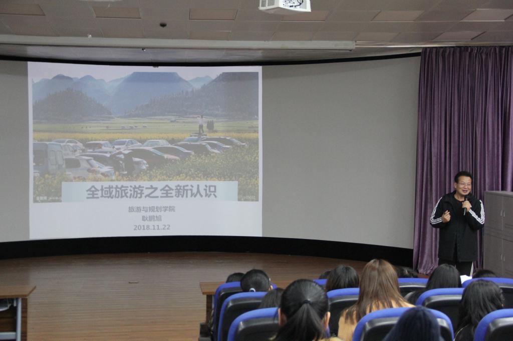 11月23日,15VIP太阳集团耿鹏旭教授在2106教室教授论坛上题为“全域旅游之全新认识”的学术讲座,我院120多名师生参加。