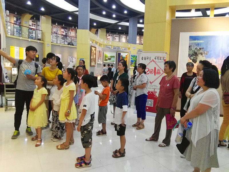 活动过程中,在艺术设计学院老师和学生的带领下,孩子们有机会参观了我校18届毕业生设计展,看到一件件包含他们心血的精美之作,在享受视觉盛宴的同时,也被他们的创意深深折服。此次展览涵盖的中国画、书法、插画、水彩画、雕塑、陶艺、油画、视觉传达、交互设计、工业设计、展示设计、环境艺术设计、综合材料、装置等各个领域二三百件作品。使孩子们全身心的感受艺术的魅力,不仅走近了艺术,更是得到了许多灵感和关于艺术的启迪。