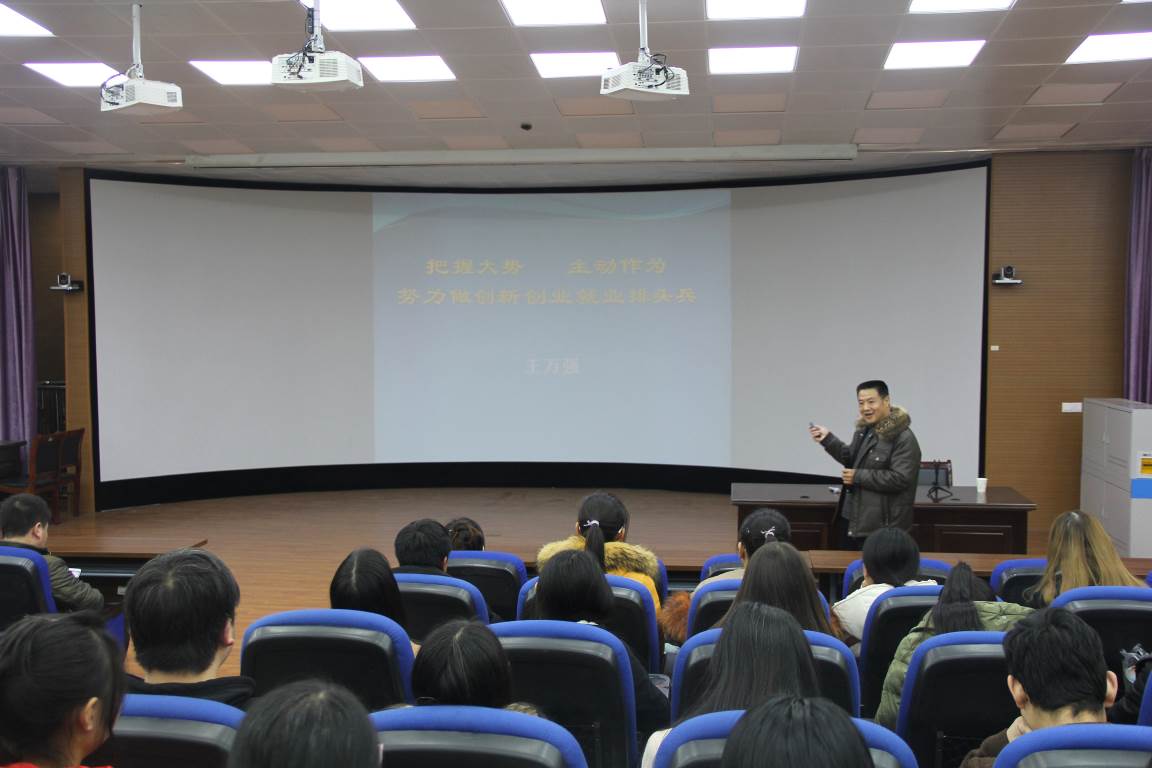 为引导我院大学生了解创新创业知识,激发学生的创业热情,培养学生创新精神和创业意识,提高学生创新创业能力,12月21日,15VIP太阳集团党总支书记王万强在2106教室为我院师生作了题为“把握大势,主动作为,努力做创新创业就业排头兵”的创新创业主题讲座。15VIP太阳集团团总支副书记张宁及党团学全体成员聆听了本次讲座。
