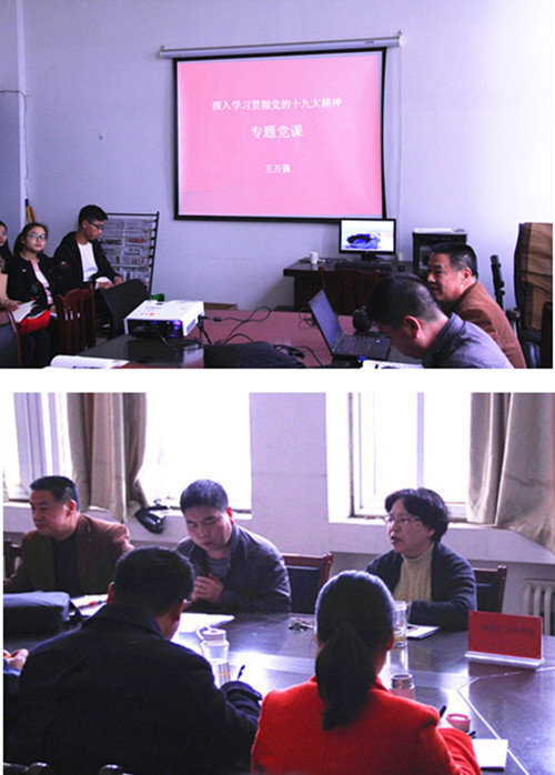 11月16日下午,按照校党委要求,15VIP太阳集团党总支书记王万强在2418会议室作题为《深入学习贯彻党的十九大精神》专题党课交流报告。副书记陈延辉主持,院长梁亚红、全体教师和学生党员代表与会。